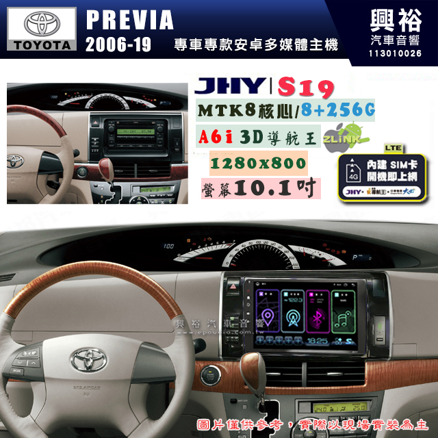 【JHY】TOYOTA豐田 2006~19 PREVIA S19 10.1吋 高解析全貼合螢幕加大安卓主機|8核心8+256G|1280×800 WXGA 卓越的顯色度 細節更豐富|獨家導航王A6i 3D聲控 +WiFi|藍芽 5.0 |贈60天行動網路 ※選配套件 環景 ※選配套件S-GUIDE 抬頭顯示器