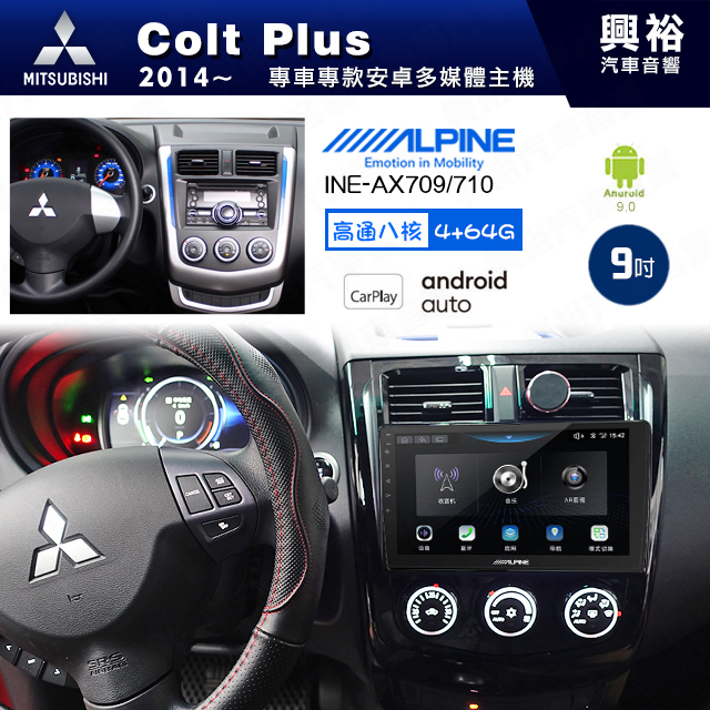 【ALPINE 阿爾派】MITSUBISHI 三菱 2014~年 Colt Plus 9吋 INE-AX709 導航多媒體影音安卓主機*藍芽+導航+安卓*高通8核 4+64G*內建環景 鏡頭選配