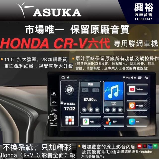 【ASUKA】飛鳥 HONDA 本田CRV6代 S版 CRV 6六 高配 專用機 雙系統 完整支援 安卓AHD-511H