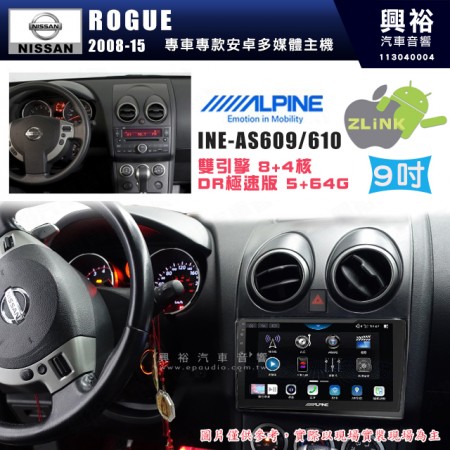 【ALPINE 阿爾派】NISSAN 日產 2008~15年 ROGUE 9吋 INE-AX709 導航多媒體影音安卓主機*藍芽+導航+安卓*高通8核 4+64G*內建環景 鏡頭選配