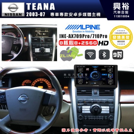 【ALPINE 阿爾派】NISSAN 日產 2003~07年 TEANA 9吋 INE-AX709 Pro 發燒美聲版車載系統|8核8+256G|192K高清畫質|支援4K以上視頻|發燒級音效調音台|導航王A5i 3D+圖資|HDMI 影像輸出|藍芽+WiFi+全網通|Z-LiNK